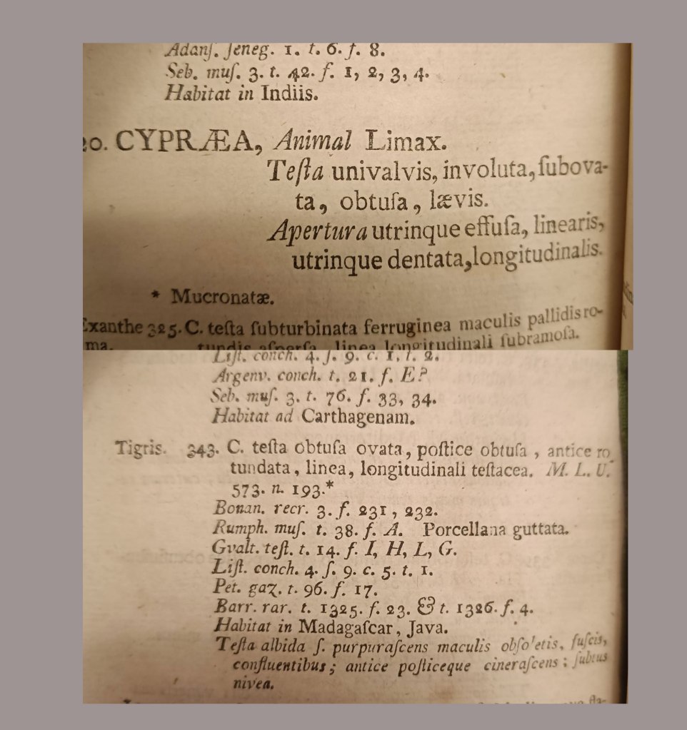 Linneo poi nella metà del 700 con il suo “Systema Naturae” la chiama cypraea tigris il nome attuale