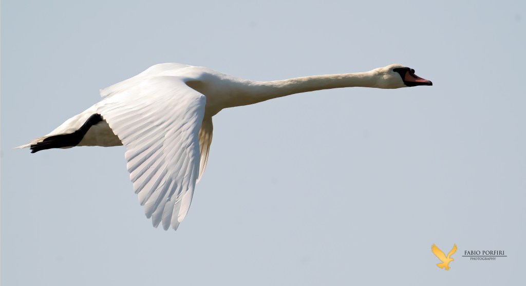 E’ il più grande dei 4 laghi, si stima che ogni anno sono presenti circa 260 specie di uccelli migratori e non. Sopra una coppia di cigni che vola verso il sole .
