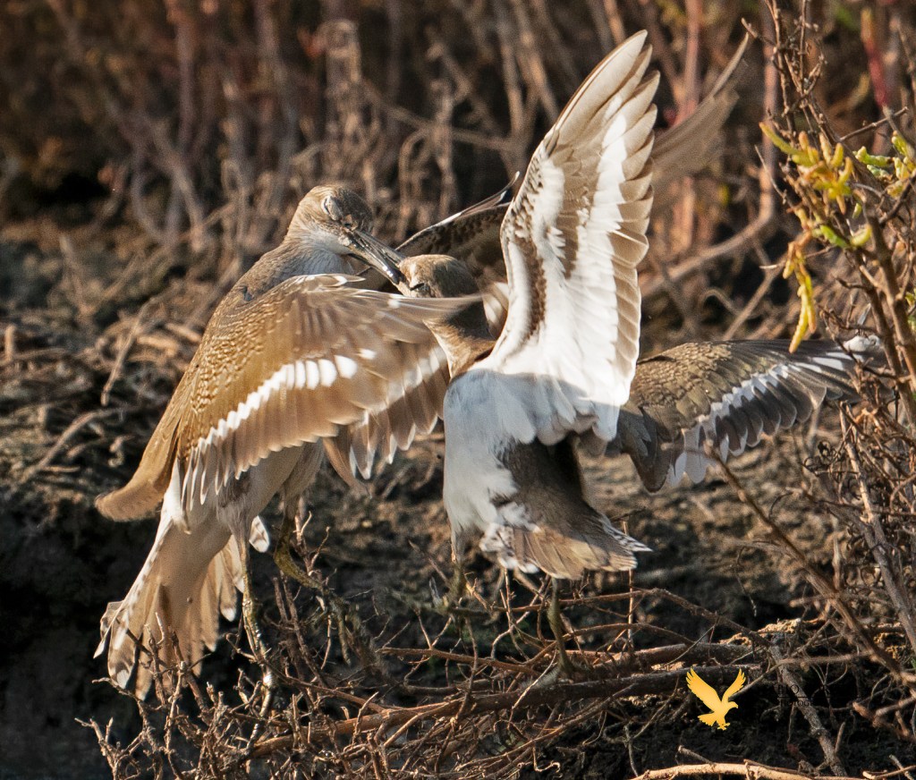 va immediatamente lungo la costa del lago dove una coppia di Piro Piro piccolo “Actitis hypoleucos” si affronta, si guardano intensamente tirando in alto il loro lungo collo per alcuni secondi e poi…